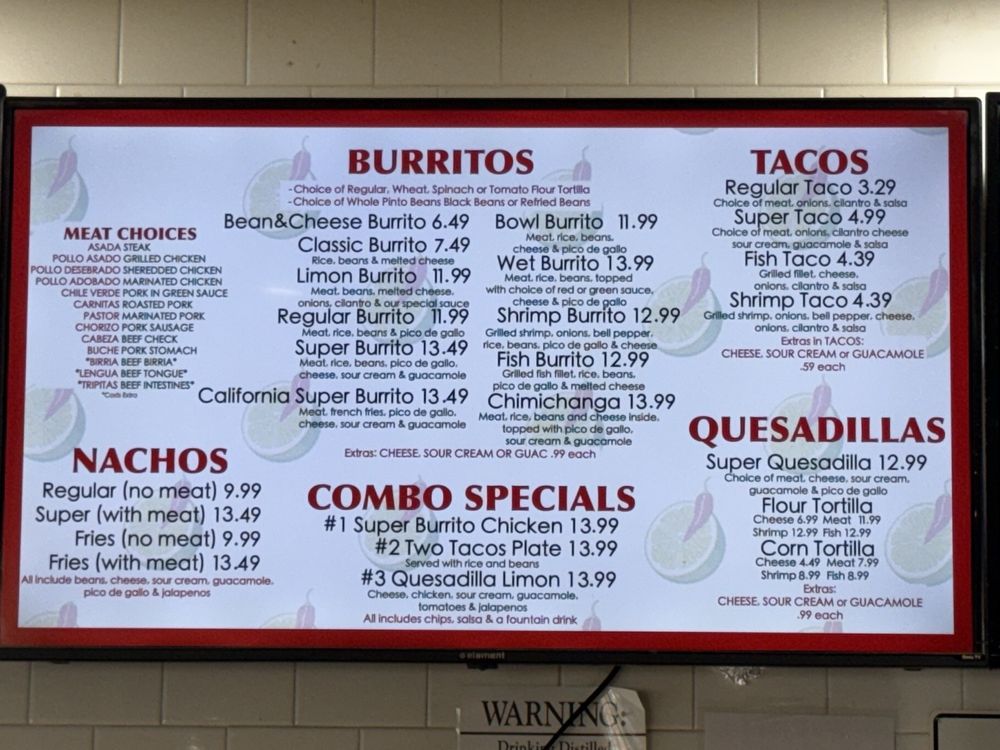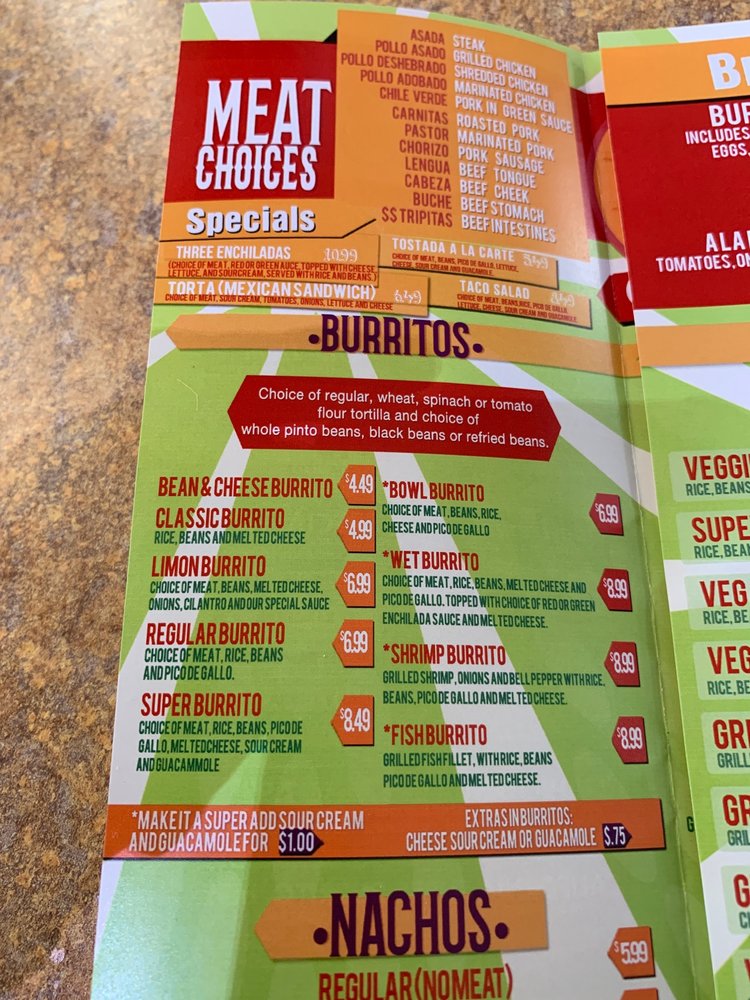 - Tacos: Try the Super Taco, layered with savory meat, fresh onions, and a burst of flavors from guacamole and salsa, all for just $5.49. If you’re in the mood for something different, their crispy and fish tacos are also fan favorites.